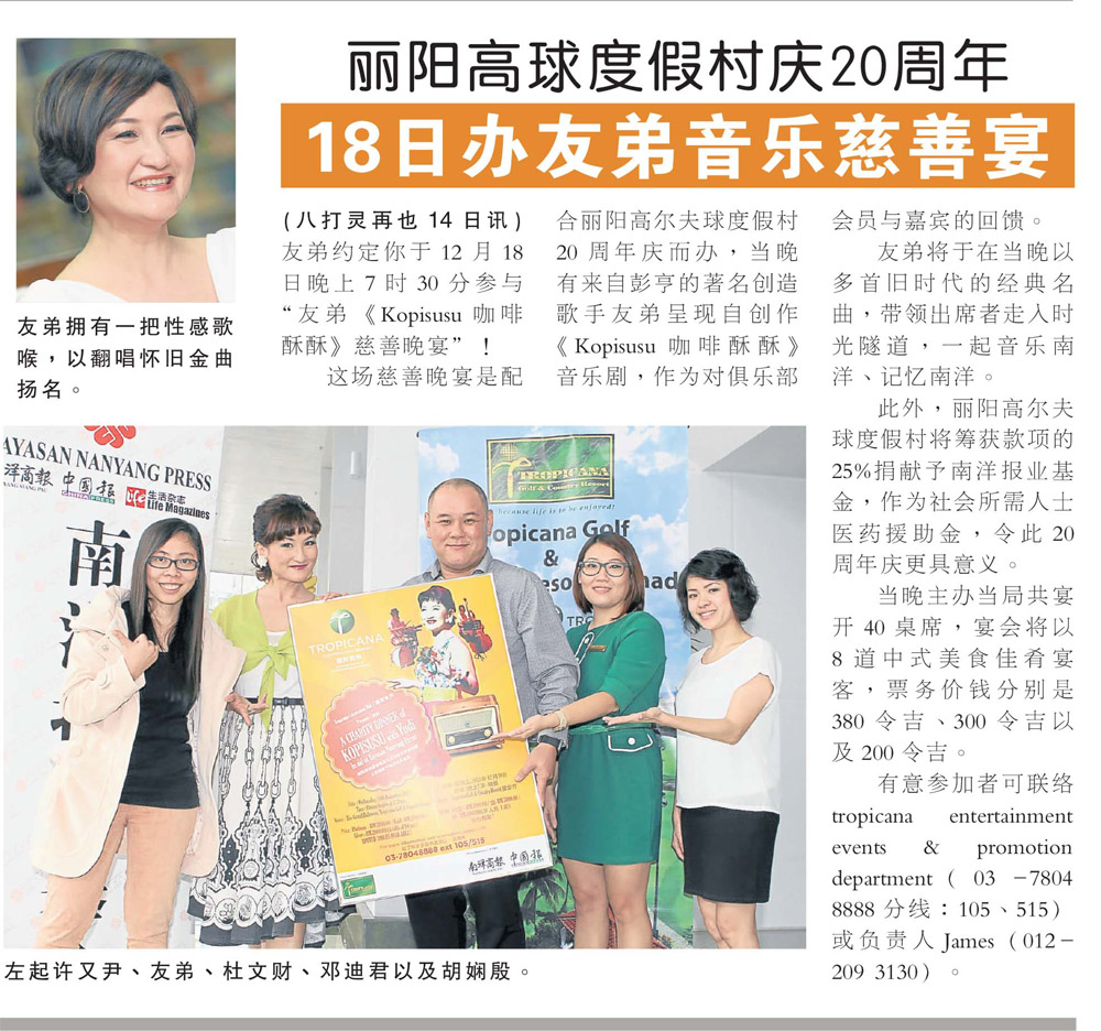 15 December 2013 - 丽阳高球度假村20周年18日办友弟慈善宴Posted under news ·