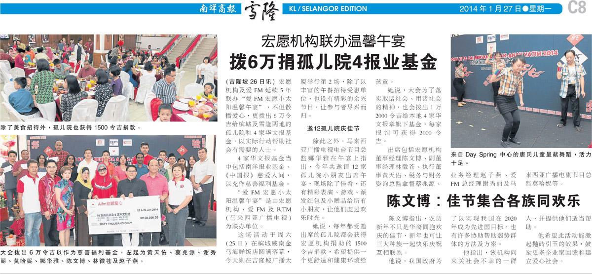 27 January 2014 - 宏远机构联办温馨午宴拨6万捐孤儿院4报业基金