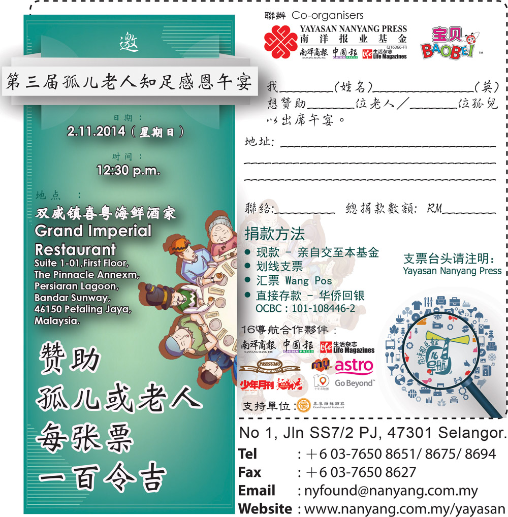 - Should you have any inquiry please do not hesitate to contact Yayasan Nanyang Press. 请联络南洋报业基金 03-76508651 / 669 / 694 / 675 询问详情。