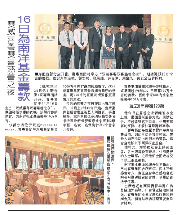 30 October 2014 - 双威喜粤双喜慈善宴Posted under news ·