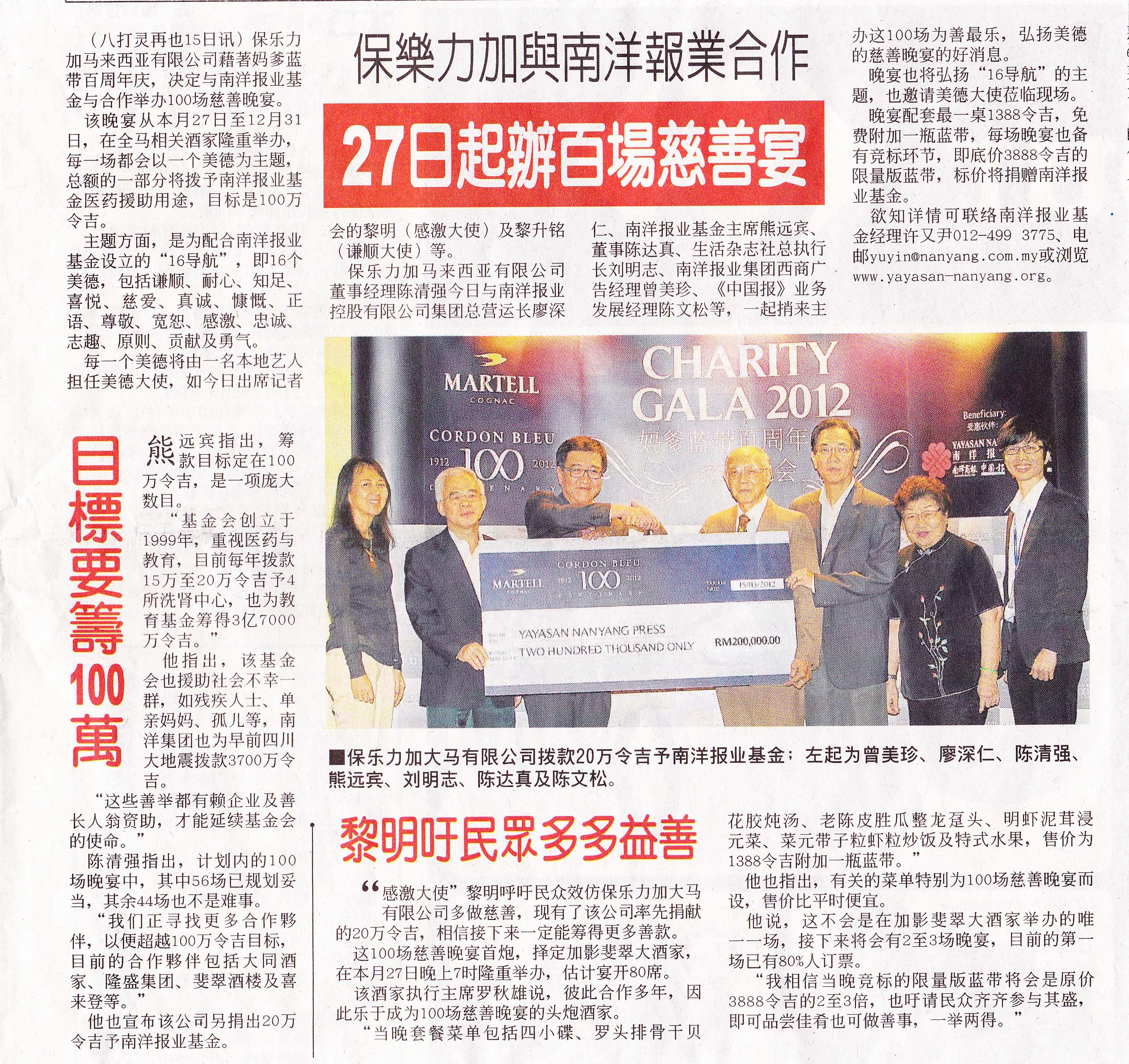 Newscut: 16 March 2012 - Pernod Ricard and Yayasan Nanyang's 100 feasts for charity
