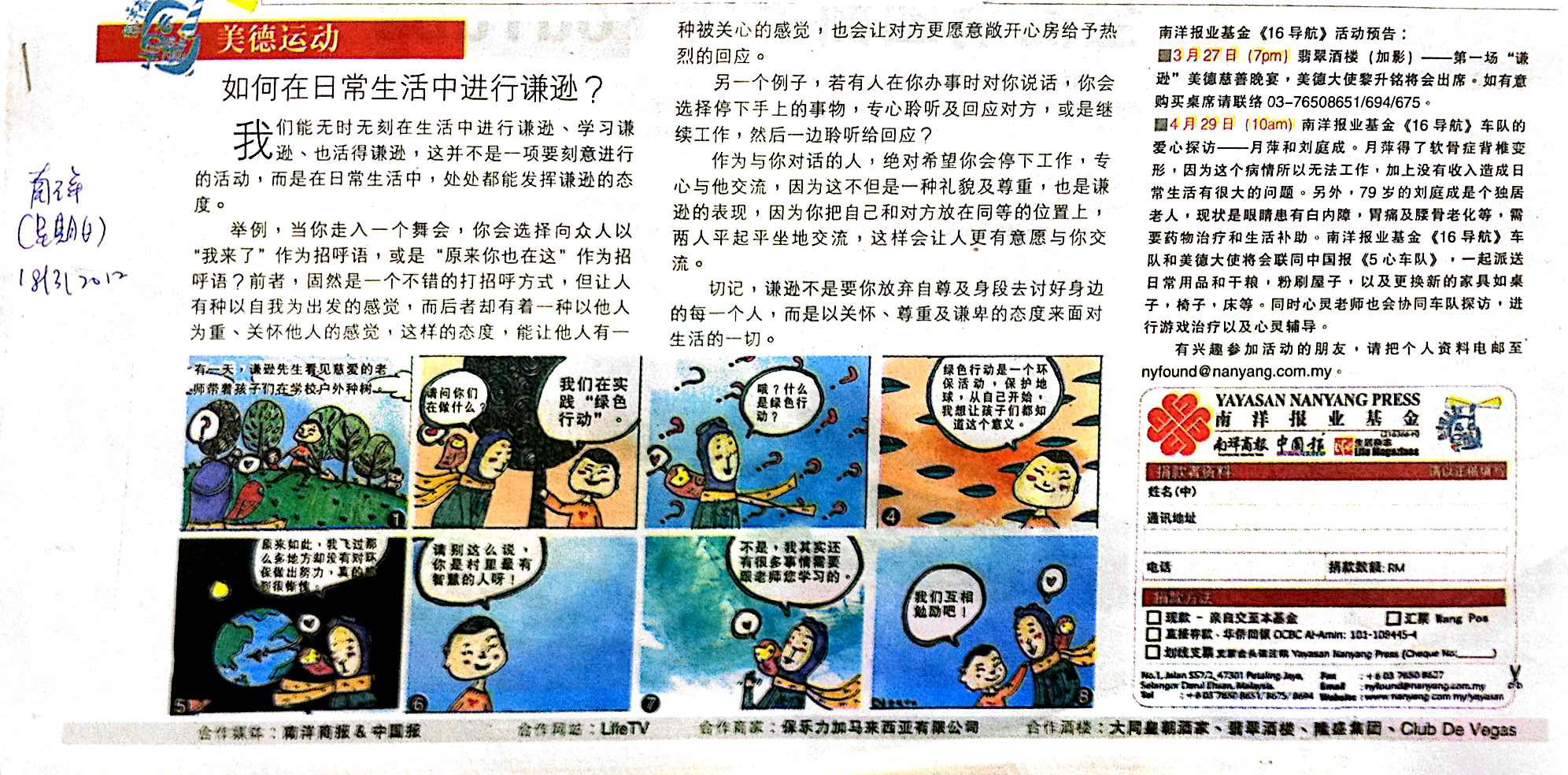 我们能无时无刻在生活中进行谦逊、学习谦逊、也活得谦逊,这并不是一项要刻意进行的活动,而是我们生活的活动中,处处都能让我们发挥谦逊的态度。
