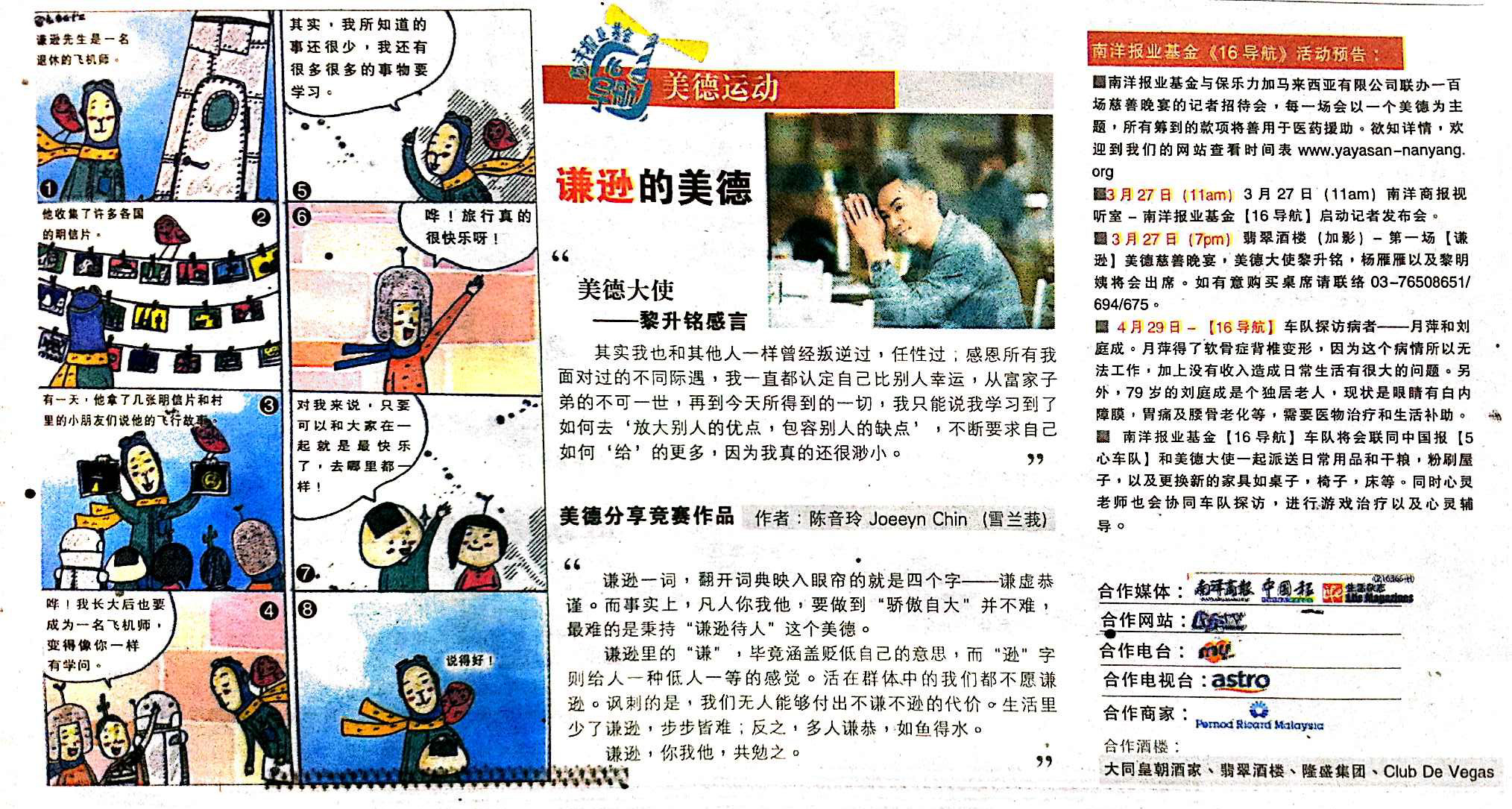 【谦逊】美德分享竞赛优胜者 – 陈音玲 Joeeyn Chin (雪兰莪)