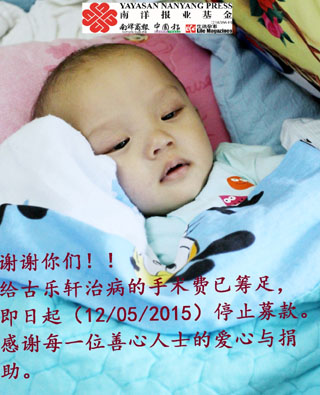 给与古乐轩的20万令吉手术费已经筹足,即日起停止募款。