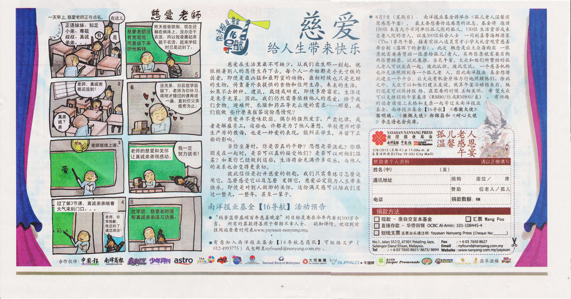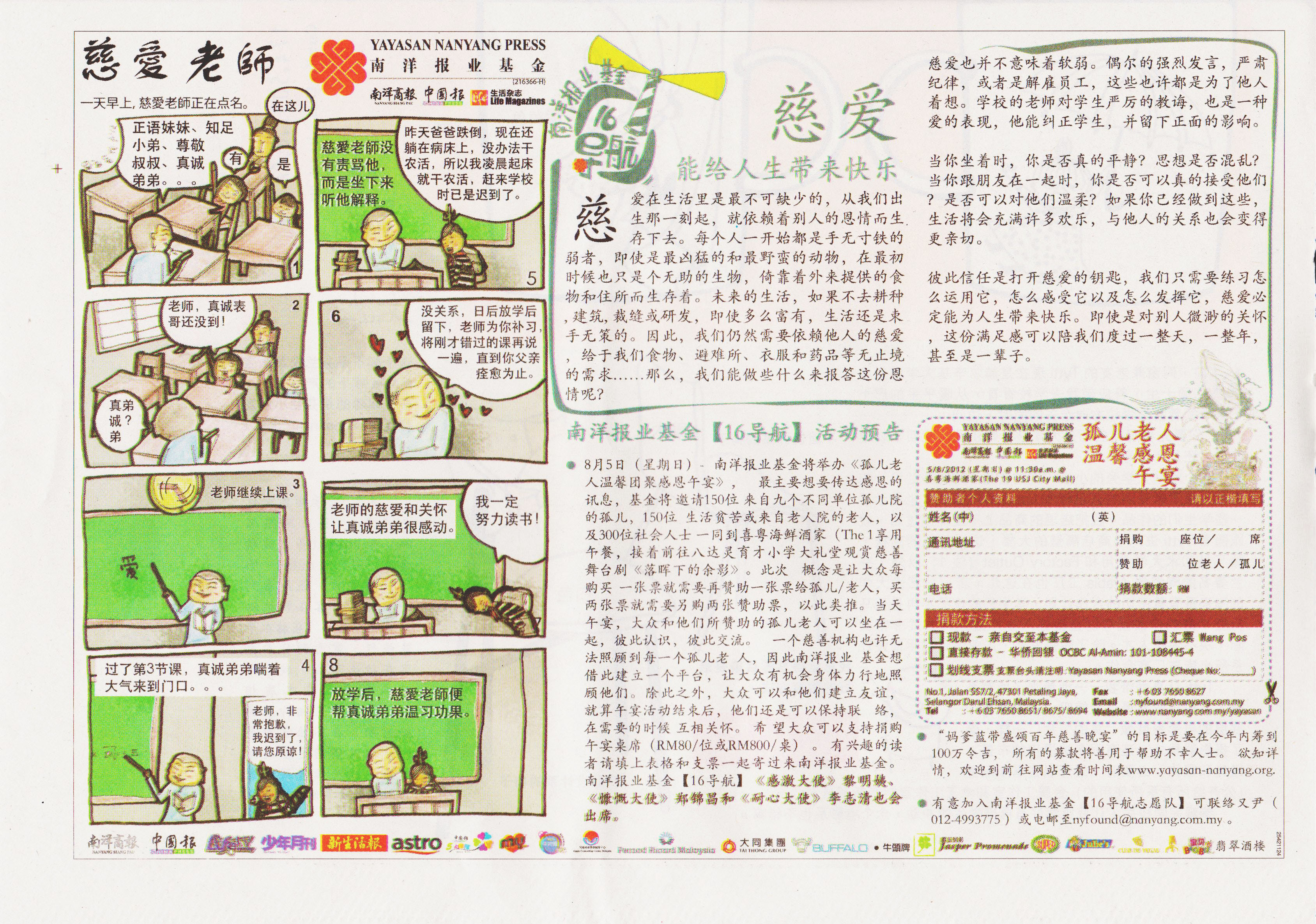 慈爱在生活里是最不可缺少的,从我们出生的那一刻,就依赖着别人的恩情而生存下去。每个人一开始都是手无寸铁的弱者,即使是最凶猛的和野蛮的动物,在最初的时候也只是个无助的生物,一直在接收外来提供的食物和住所而生存着。在未来的生活里,如果没有人去耕种, 建筑, 裁缝和研发,即使我们有多富有,生活还是会束手无策。因此,我们仍然需要依赖他人的慈爱,给于我们食物、避难所、衣服和药品等等无止境的列表。那么我们能做些什么来报答这个恩情呢?