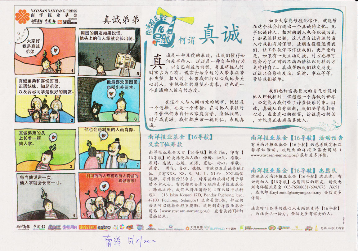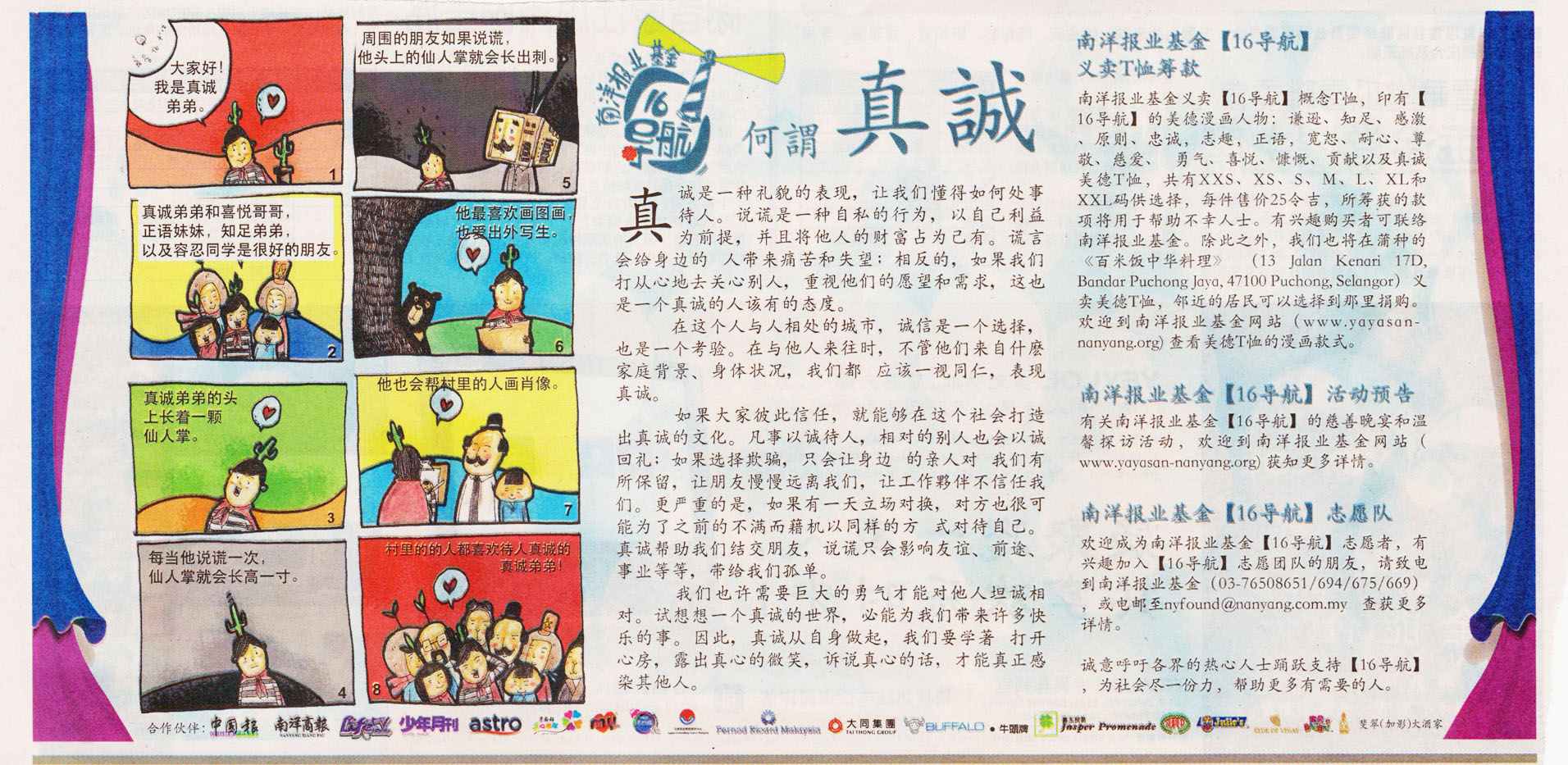 在这个人与人间相处的城市里,诚信是一个选择,也是一个考验。在跟别人来往的时候,不管他们来自什么家庭背景,身体状况,财产或资源,我们都应该一视同仁,表现真诚。