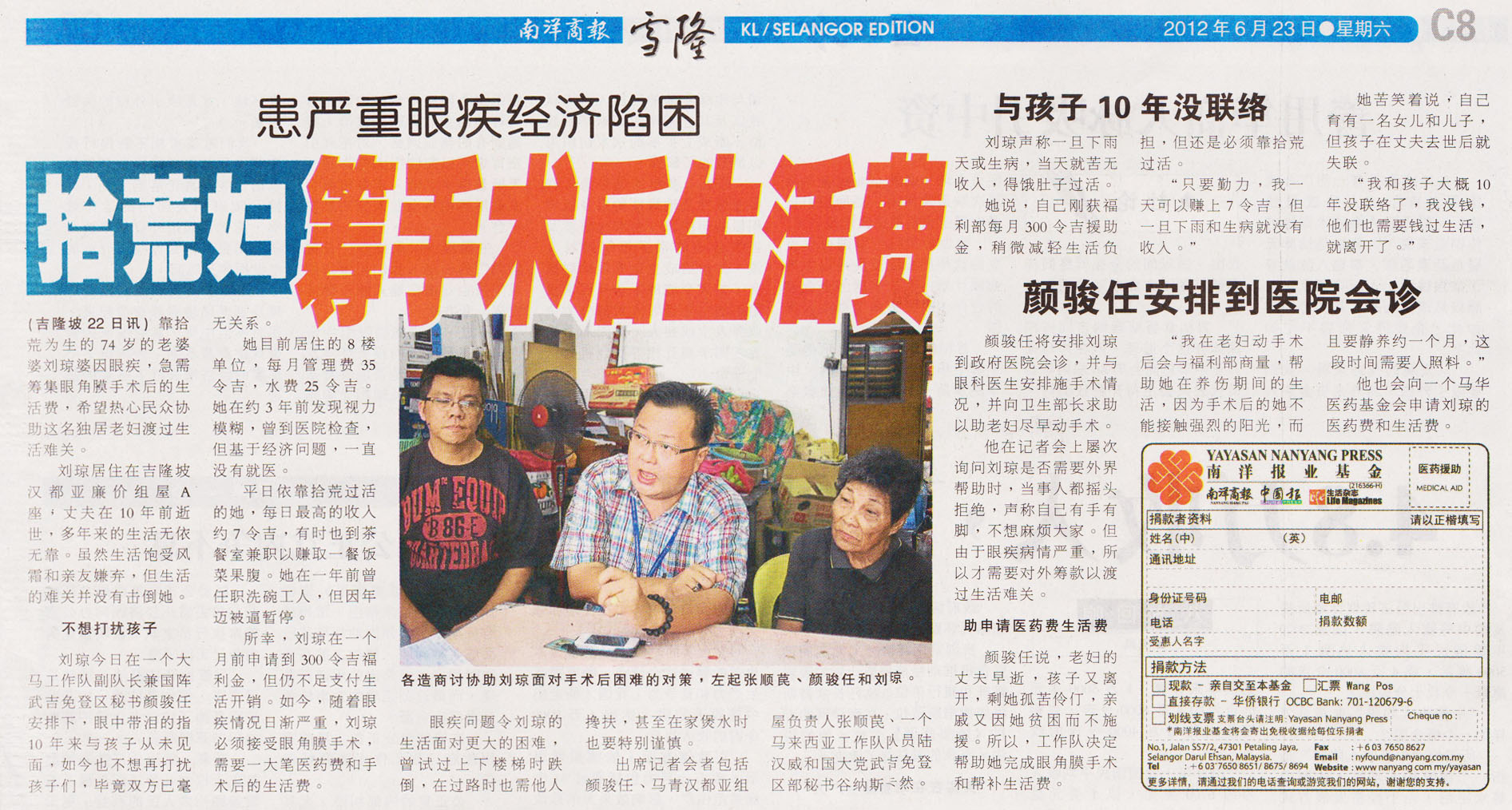 Condition: 眼疾,靠拾荒过活