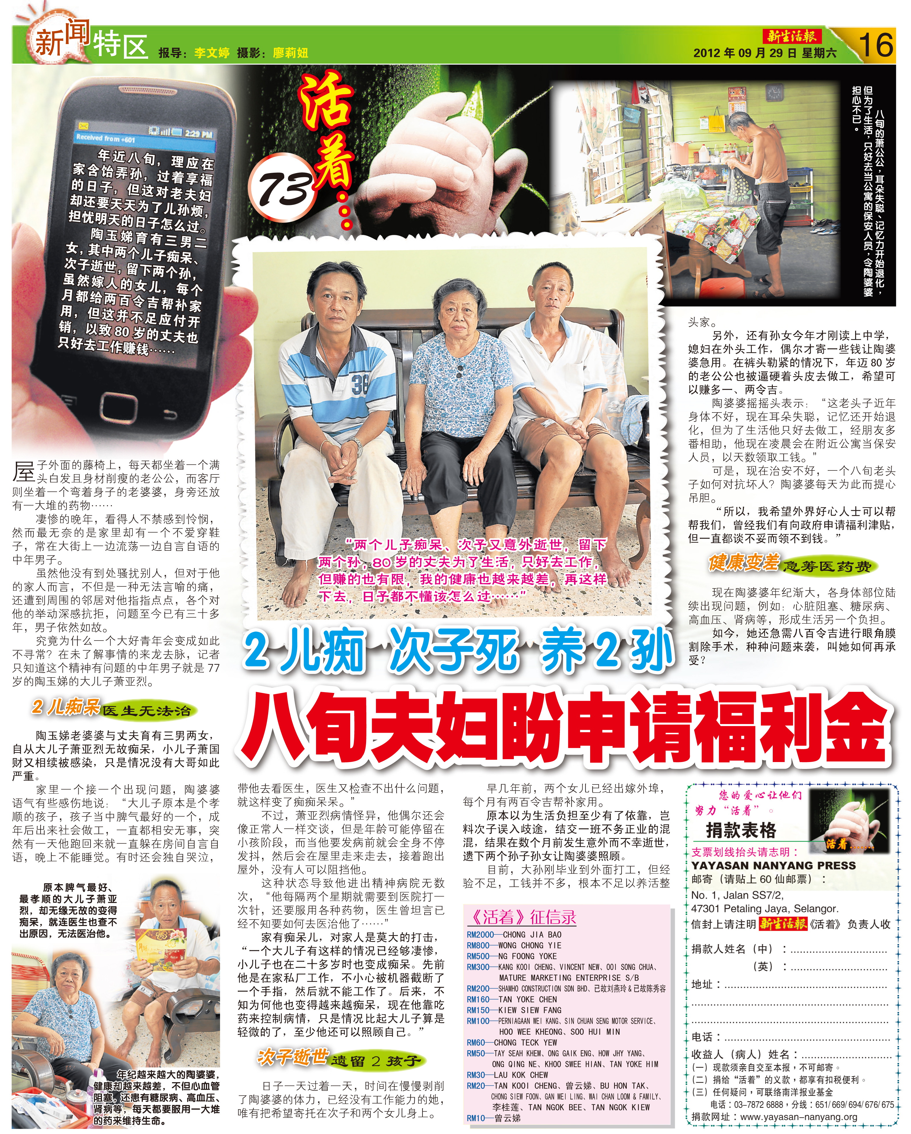 Age: – Condition: 两个儿子痴呆,次子又意外逝世,留下两个孙子,80岁的丈夫为了生活只好去工作。 Links: – Donor List |