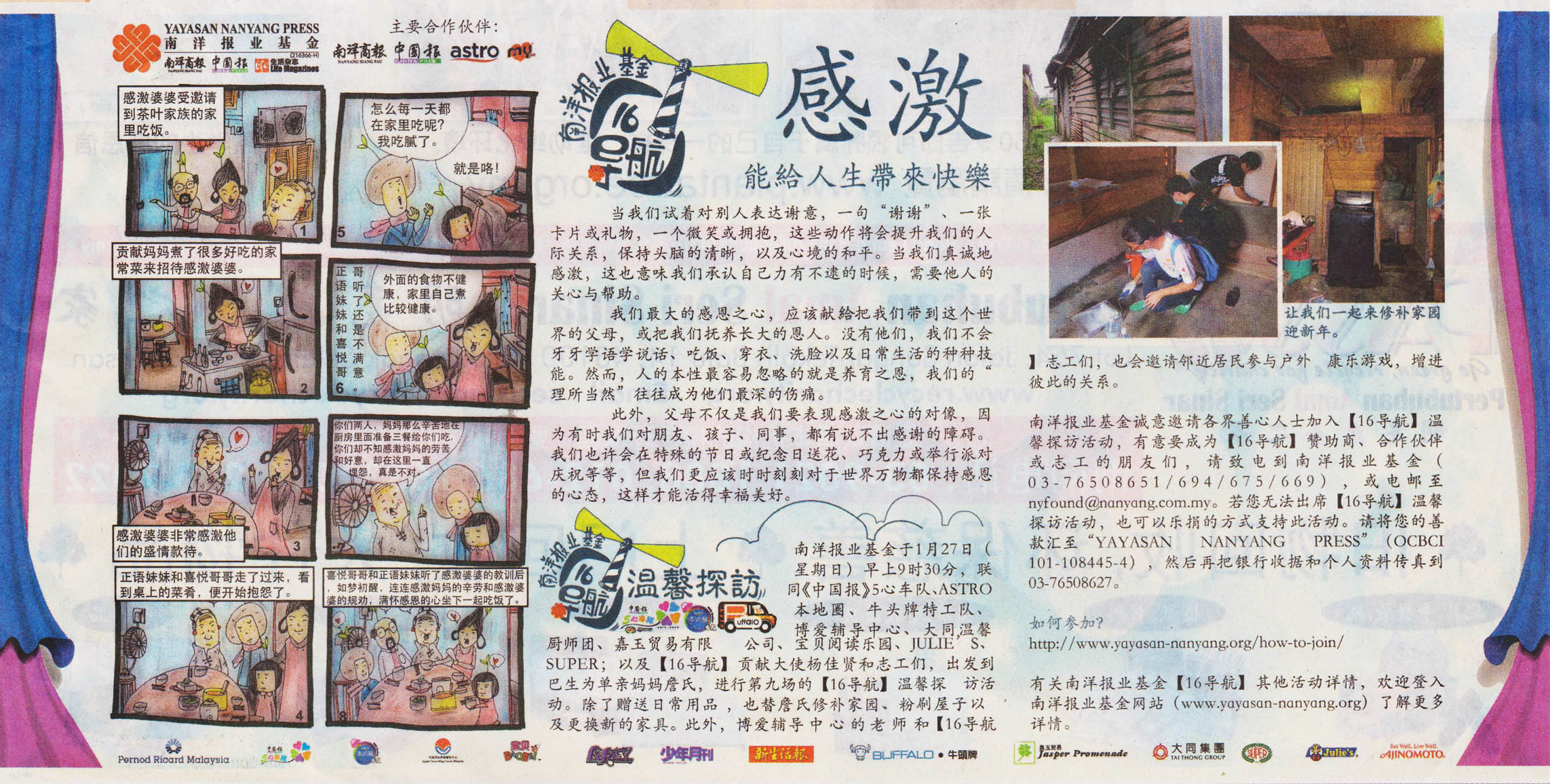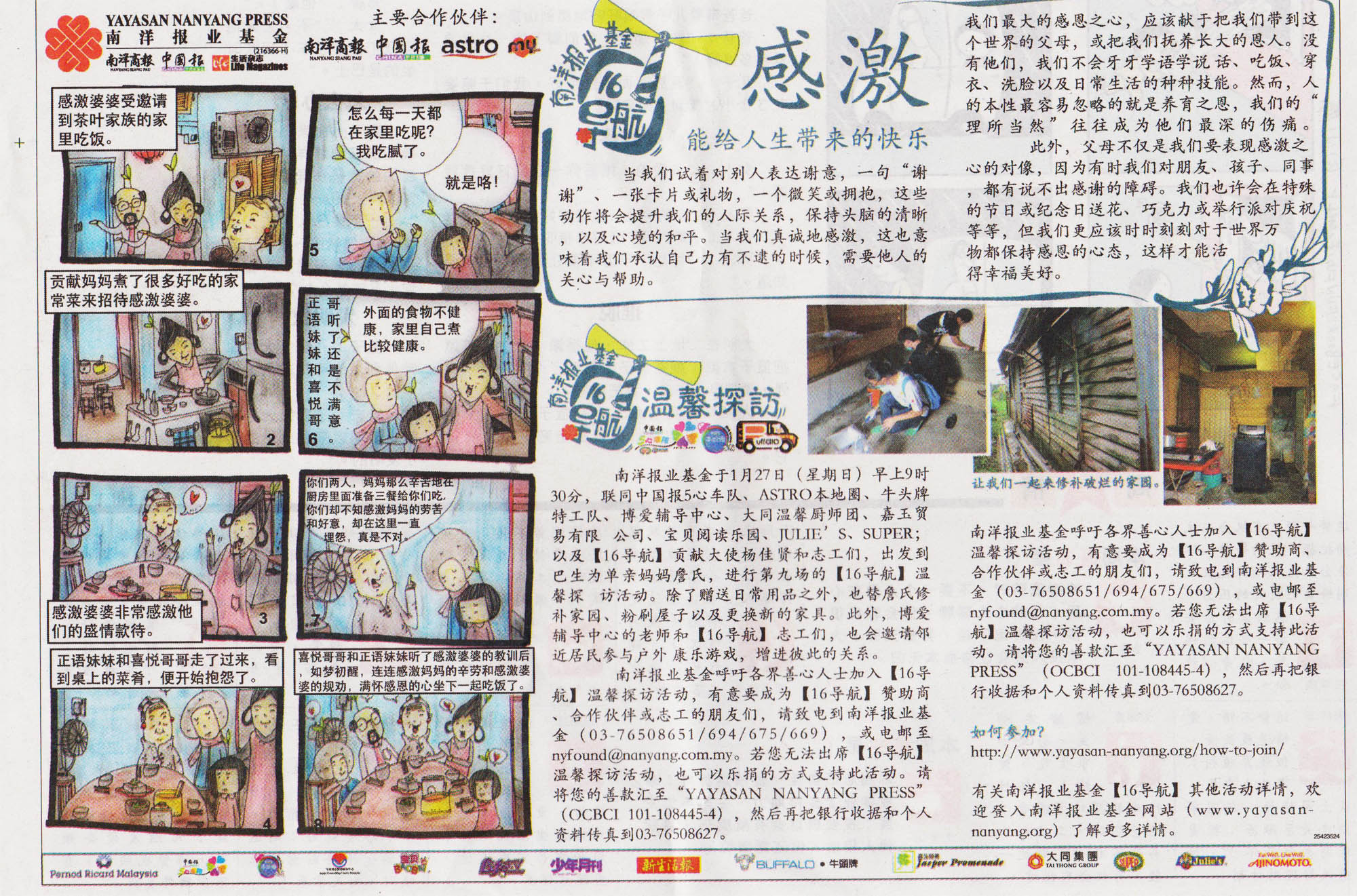我们最大的感恩之心应该献于把我们带到这个世界的父母亲,或把我们抚养长大的人。没有他们,我们就不会学会说话、煮饭、穿衣、洗脸以及日常生活的种种修养。然而,人的本性最容易忽略的就是养育之恩,我们的理所当然往往会造成他们最深的伤痛。