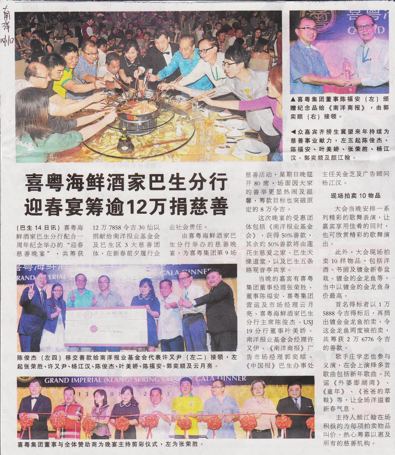 Newscut: 15 January 2013 - 喜粤海鲜酒家巴生分行,迎春宴筹逾12万捐慈善Posted under news ·