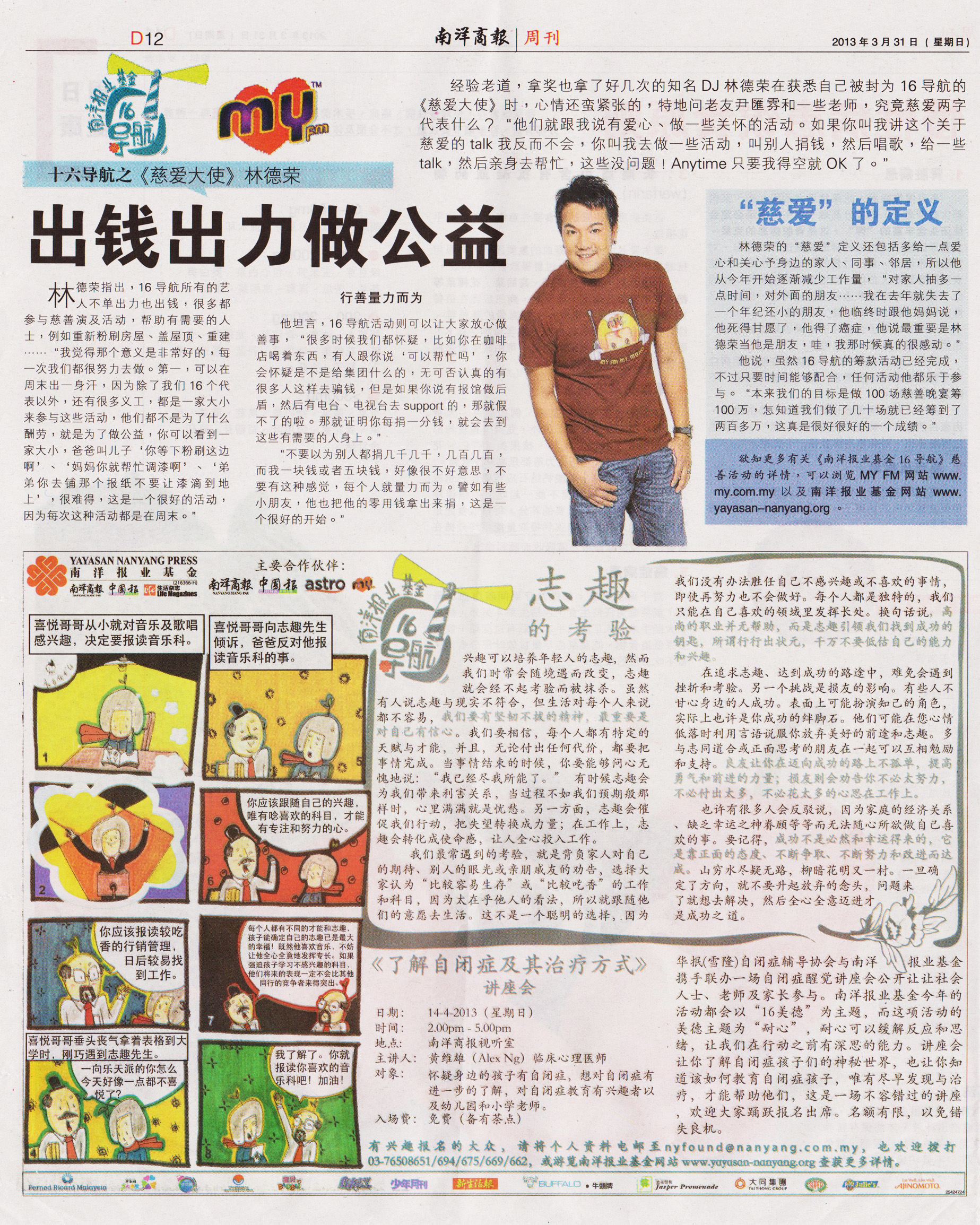 我们最常遇到的考验,就是往往会背负家人对自己的期待、别人的眼光或亲朋戚友喋喋不休的劝告,选择大家认为“比较容易生存”或“比较吃香”的工作和科目,因为太在乎他人对自己的看法,所以就跟随他们的意愿去生活。但这其实不是一个聪明的选择,因为我们没有办法胜任自己不感兴趣或不喜欢的事情,即使再努力也不会做好。每个人都是独特的,我们只能在自己喜欢的领域里发挥自己的长处。换句话说,高尚的职业并无帮助,而是志趣引领我们找到成功的钥匙,所谓行行出状元,千万不要低估自己的能力和兴趣。