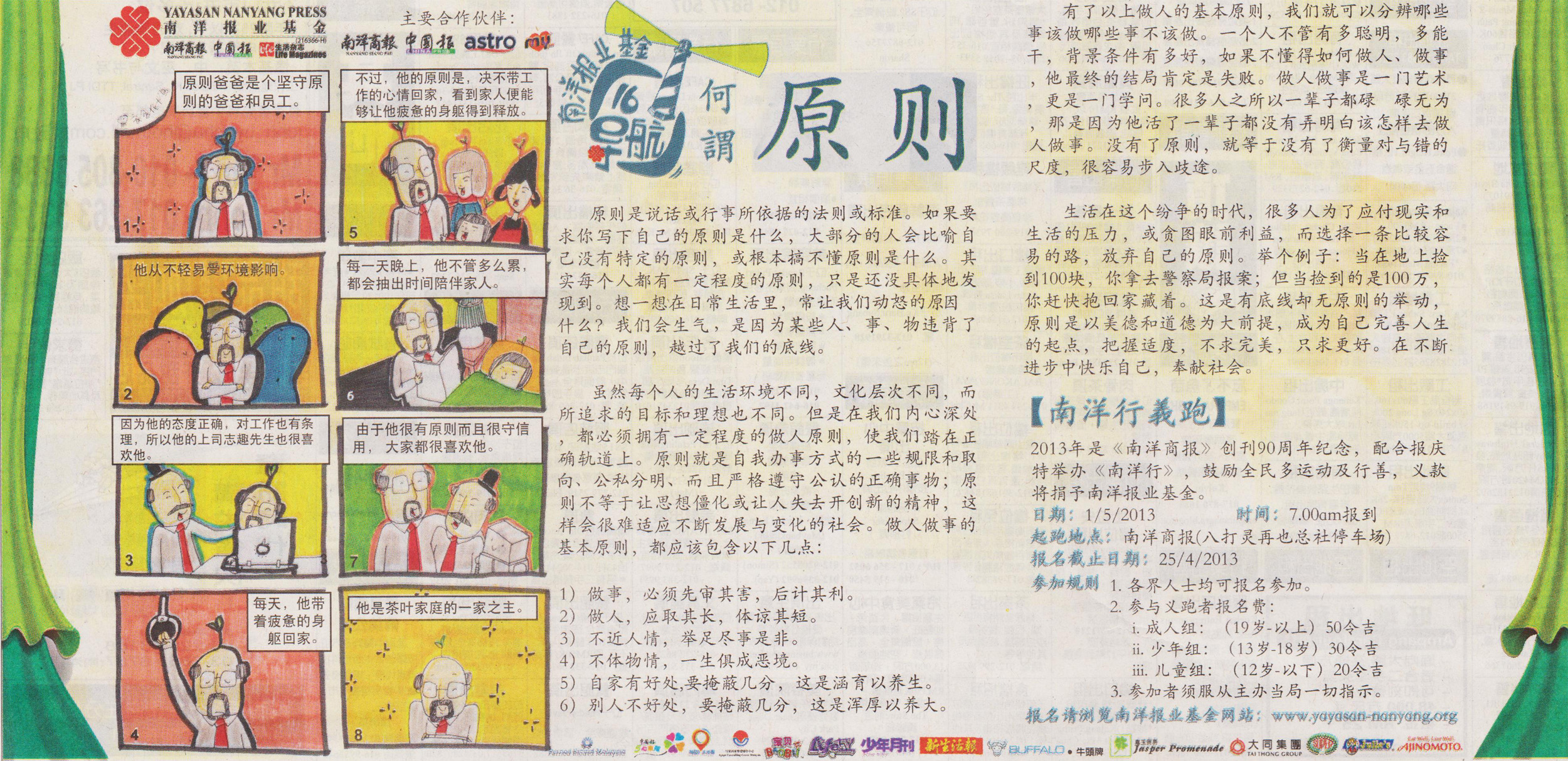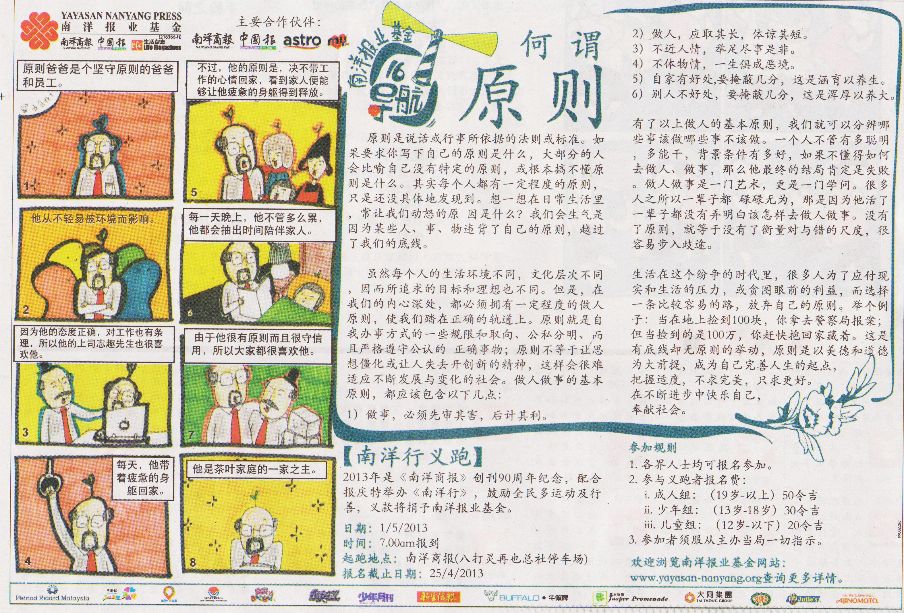 生活在这个纷争的时代里,很多人为了应付现实和生活的压力,或贪图眼前的利益,而选择一条比较容易的路,放弃自己的原则。举个例子:当在地上捡到100块,你拿去警察局报案;但当捡到的是100万,你赶快抱回家藏着。这是有底线却无原则的举动, 原则是以美德和道德为大前提,成为自己完善人生的起点,把握适度,不求完美,只求更好。在不断进步中快乐自己,奉献社会