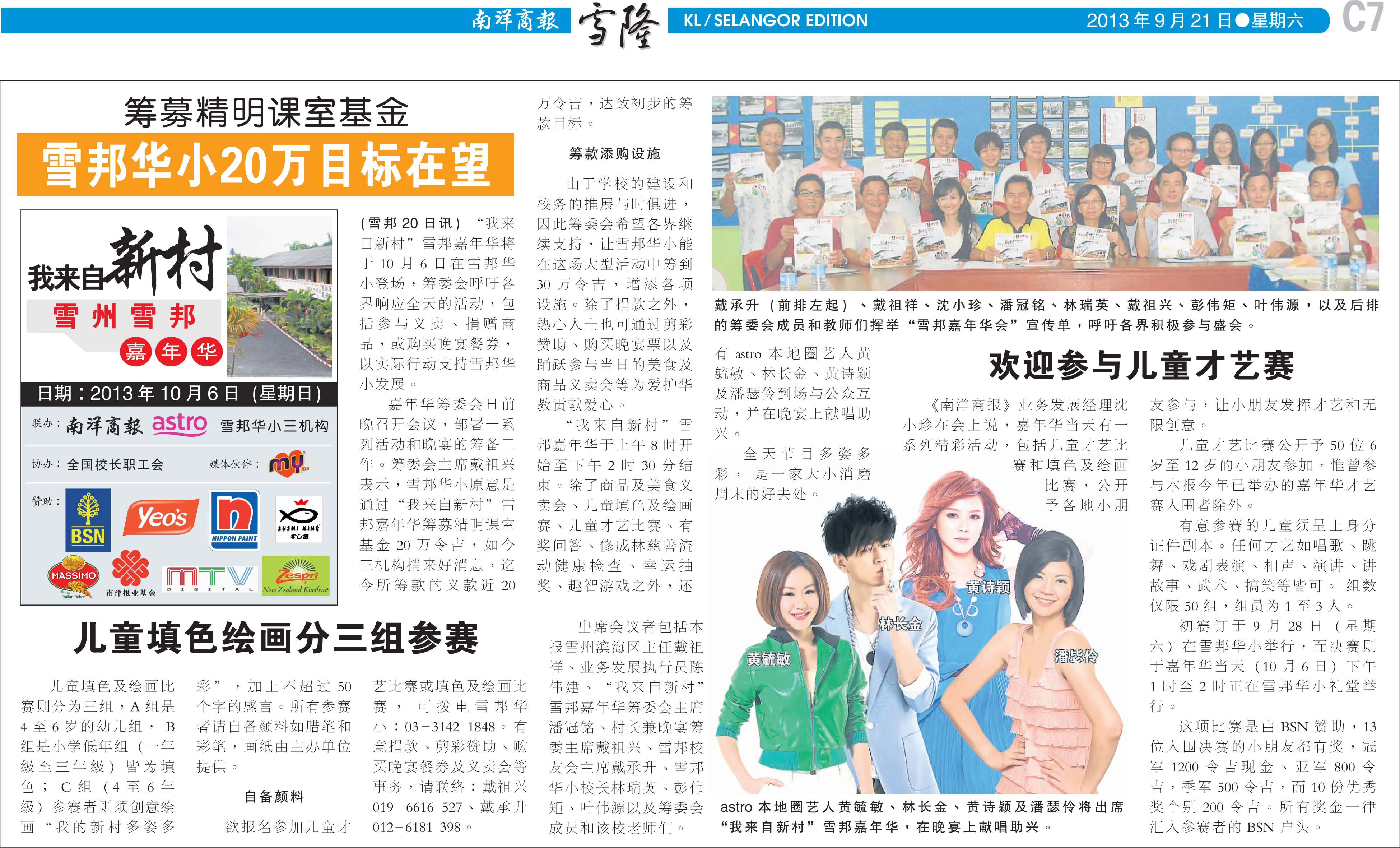 Newscut: 21 September 2013 - 筹募精明课室基金雪邦华小20万目标在望Posted under news ·
