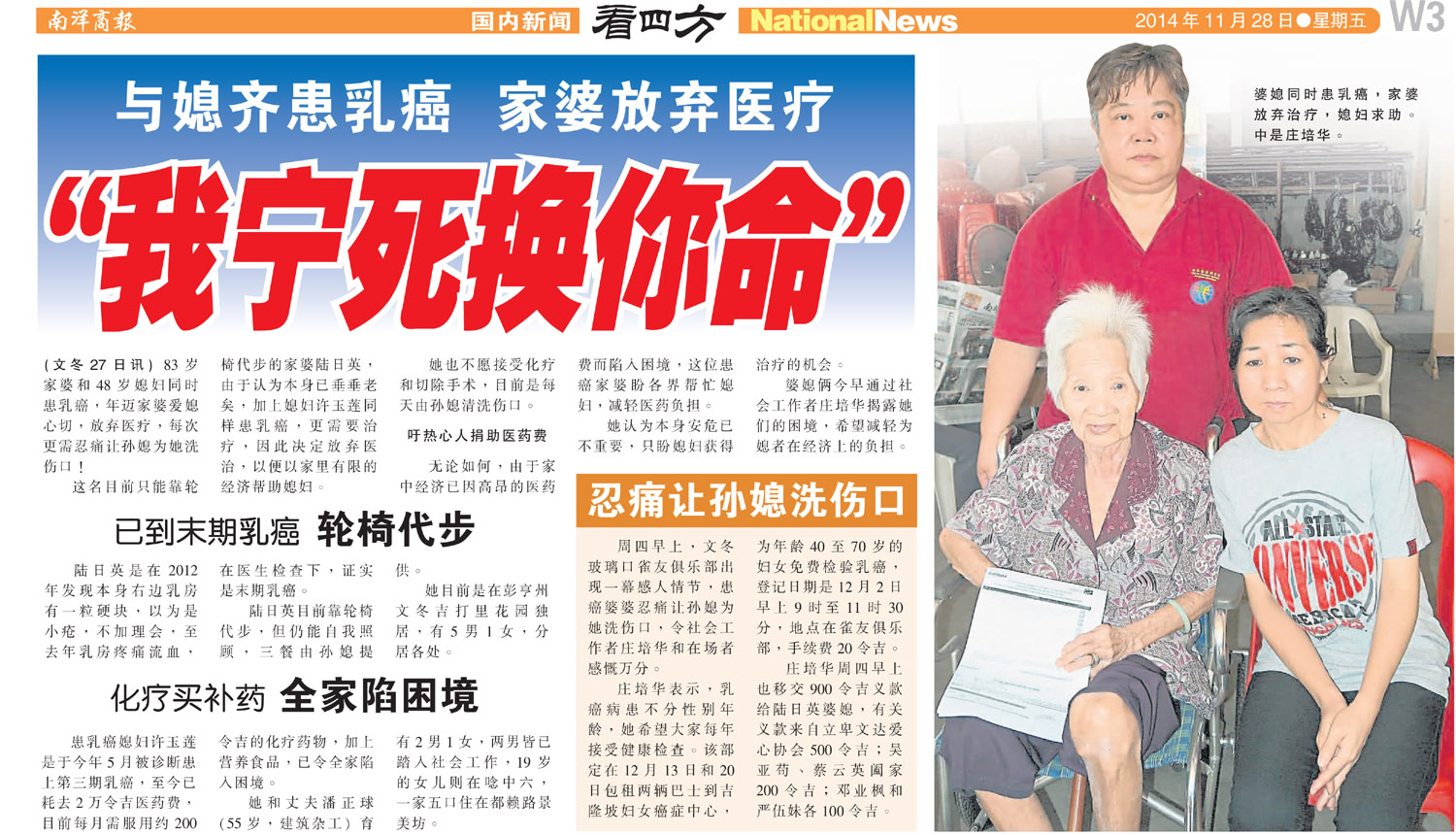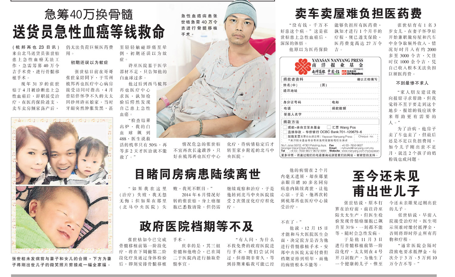 Updates 24/8/2017南洋报业基金生活援助受惠者符诗松于2017年8月24日不幸逝世。 基金为他筹得了RM63,507.70 ,并于11/03/2015开始资助他每个月RM2000的生活费。直到11/08/2017为止,一共资助了RM60,000. 如今符先生往生了,基金为他筹得的善款余额RM3507.70将会全数交给他的家属作为处理符先生身后事费用的用途。