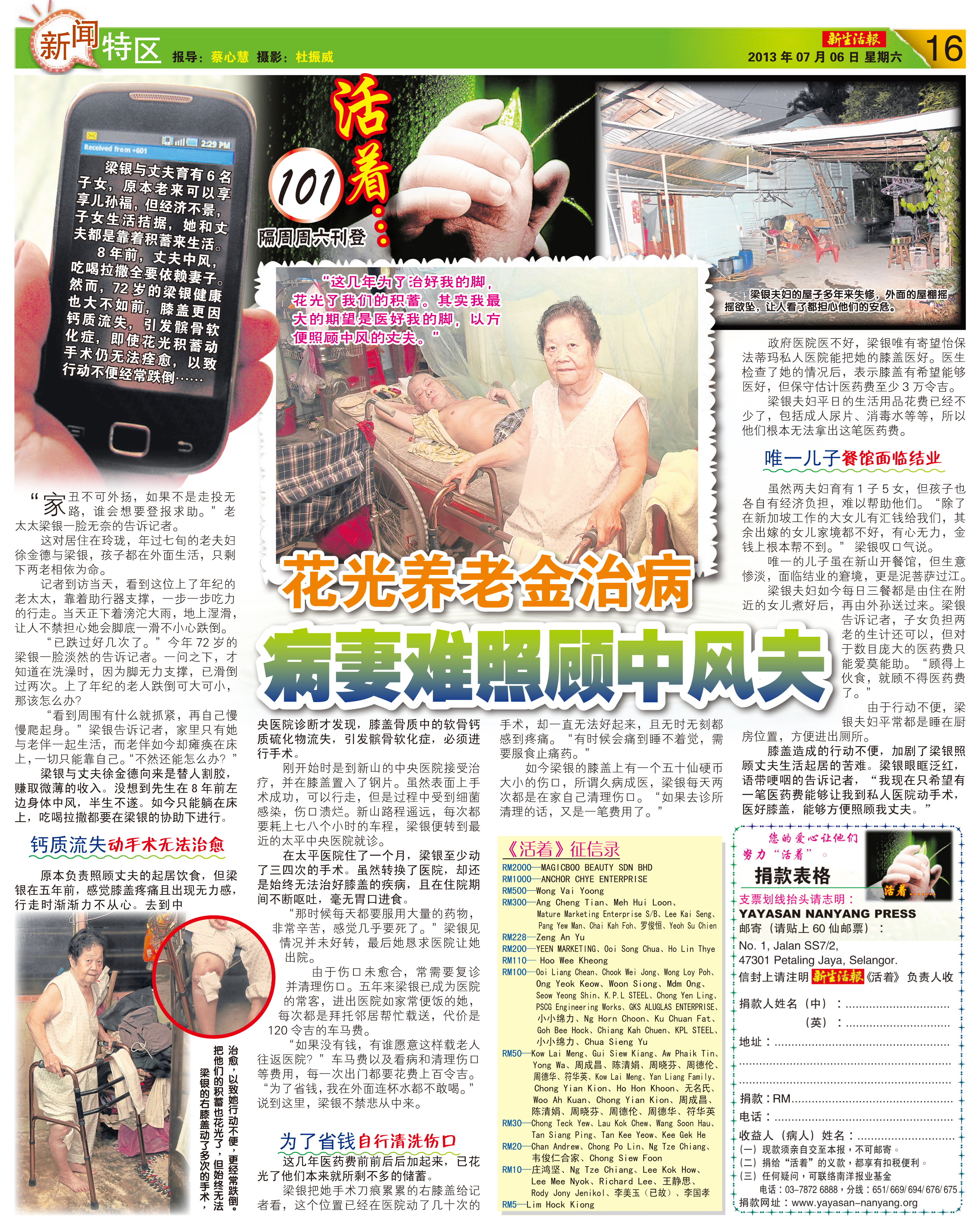 Age 年龄: 48 Condition 病情: 胰脏癌,估计需医药8万-12万 Links: – Article: Nanyang Siang Pau – Article: China Press – Donor List |