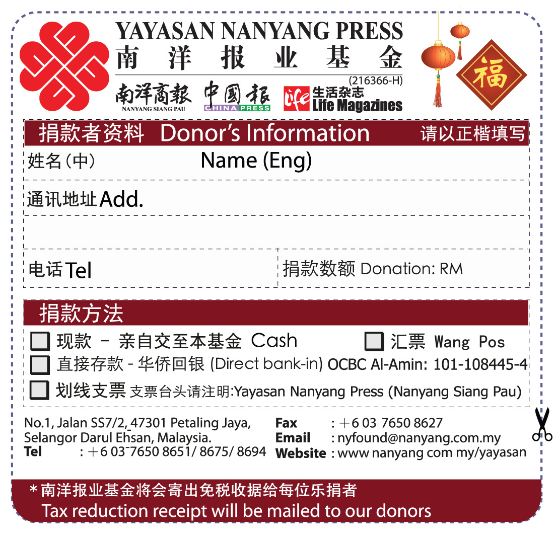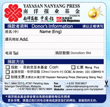 在2012的农历新年,南洋报业基金盼望您的加入,一起为社会做出贡献,把装满爱心的福袋,派送给有需要的人。您的一袋希望,可以做出改变,重新把“农历新年“还原在他们的日历里,这是多么有意义的一件事! Links: Newsletter | Donation form … 2011年圣诞筹款活动 – 与南洋报业基金一起延爱人间Yayasan Nanyang Press would like you to be with us and make your Christmas this year a meaningful one. All you have to do is to exercise your generosity and to share hopes with the less fortunate. Embracing the spirit of Christmas and exchanging your Christmas gifts with sincere thanks from the less fortunate will be definitely worthwhile. 今年圣诞节,南洋报业基金呼吁您用爱心换一分希望,这也是另一种交换礼物的方式。我们把每个小希望滚雪球般地滚成一座明亮的灯塔,把这份希望之光送给需要的人作为圣诞礼物,而我们换来的心灵快乐,也将会是最特别最有意义的圣诞礼物。 Links: Newsletter | Donation form … 江湖救急2011送暖到曼谷Major floods are occurring during the current monsoon season in Thailand, which began in late July 2011. The flooding – which is Thailand’s worst in 50 years – has inundated about six million hectares of land, causing damages and even deaths across the country. Flood monitoring and relief operations are currently underway. 在今年的七月下旬, 雨季为泰国带来了一场大水灾. 这是泰国五十年来最严重的洪患, 已经淹没了六百万公顷的土地, 夺走了七百多人的生命。让当地居民不单失去了家园, 也丧失了亲人. 志愿者和救援队已在进行洪水监测以及防洪行动. Links: Newsletter | Brochures | Related News Articles | Fundraising Activities | Partners | Photos | Donation form |
